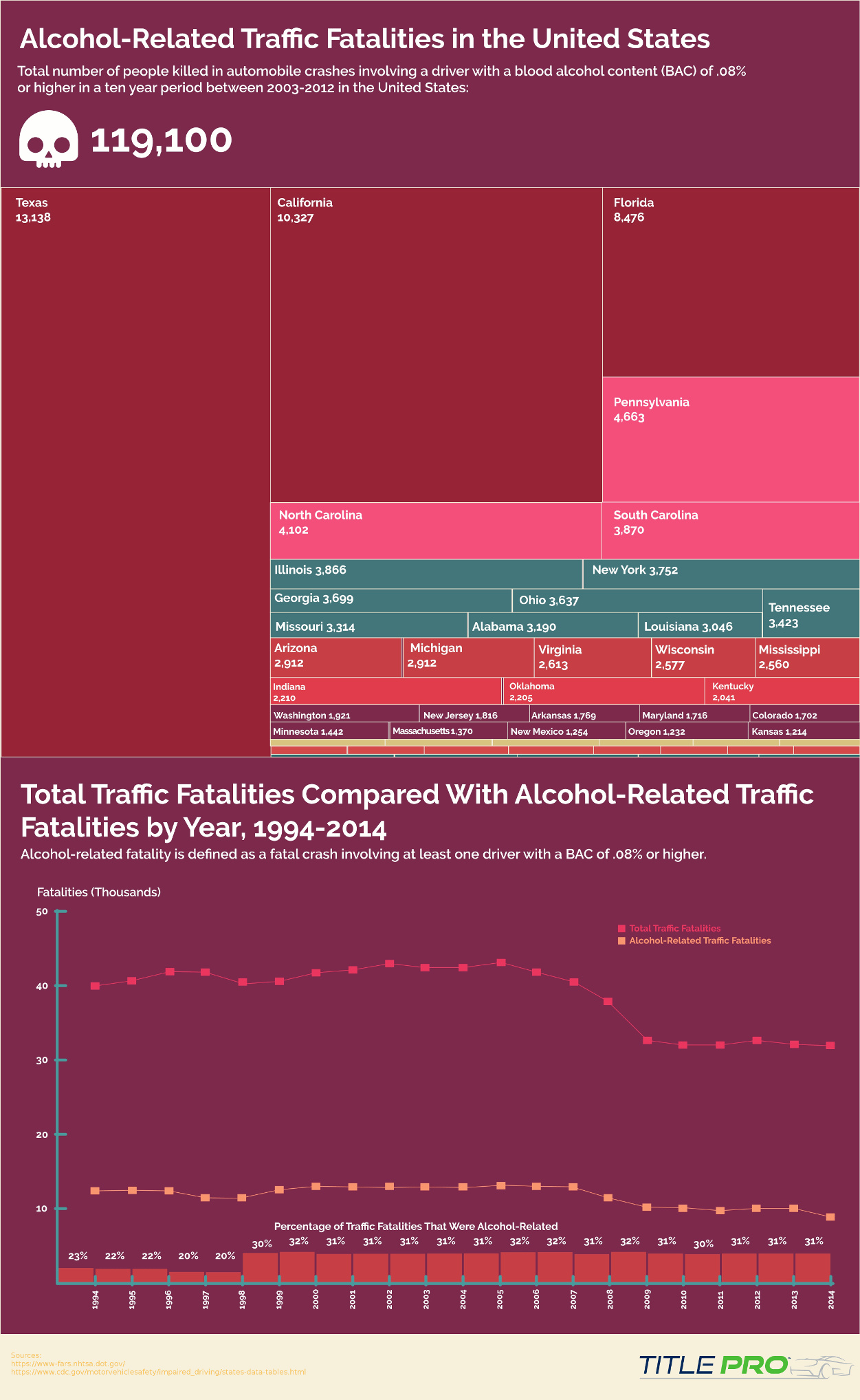 Alcohol-related traffic fatalities by state & year